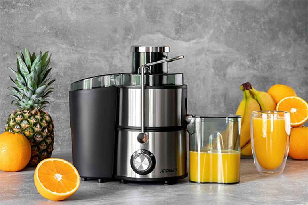 Sizning e’tiboringizga meva, sabzavot, ko‘kat va rezavor mevalardan yangi va foydali sharbatlarni tayyorlash uchun oshxonangizda ajralmas yordamchiga aylanadigan markazdan qochma sharbat siqqichni taqdim etamiz. 1000 Vt quvvatli dvigatel va yuqori samarali qirg‘ichga ega ushbu sharbat siqish mashinasi kam chiqindi va quruq kunjara qoldirib, sharbatni tez va sifatli siqib chiqarishni ta’minlaydi.