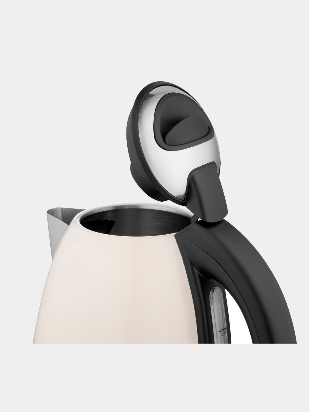 - Isitish elementi yashirin, tutqich ergonomik. Suv yo'q bo'lganda yoki qaynatilgandan keyin avtomatik ravishda o'chadi. Olinadigan shkalaga qarshi filtrga ega.