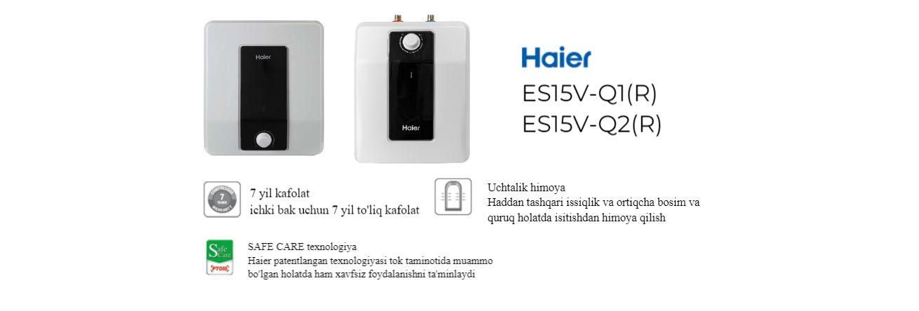 Elektr suv isitgich Haier 15 litr, 7 yillik kafolat ichki bak uchun ES15V-Q2(R)