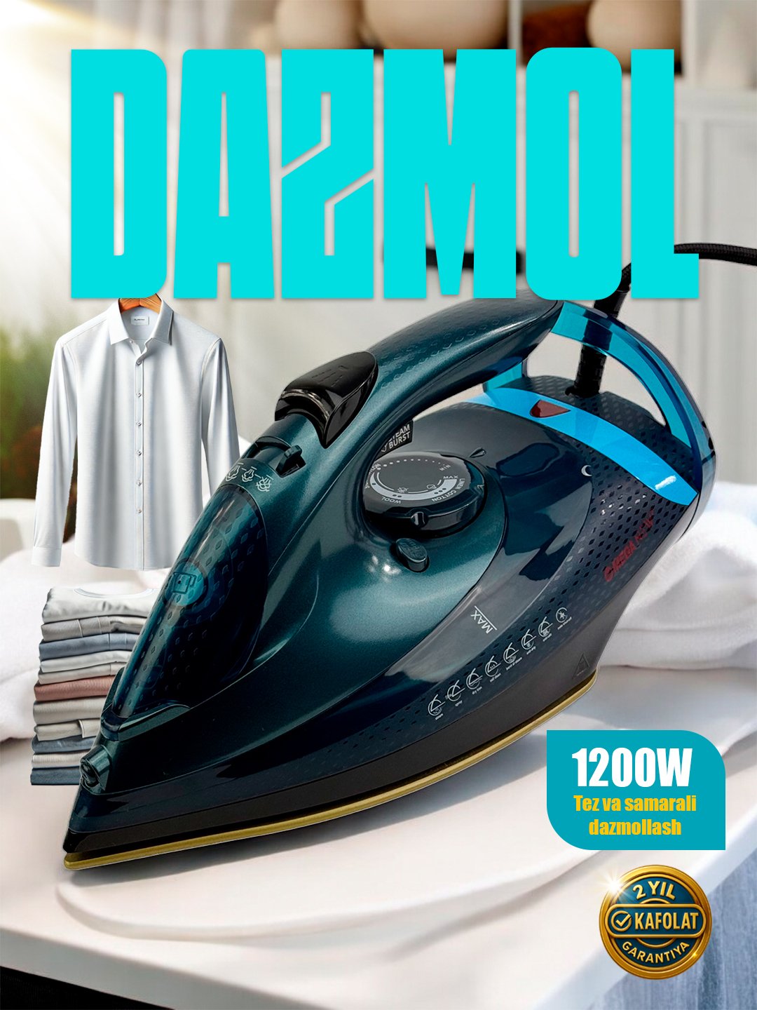 Yopishmaydigan qoplamali bug'li dazmol, dazmollash va bug'lash uchun, 1200 Vt - uyingiz uchun mukammal yordamchi!