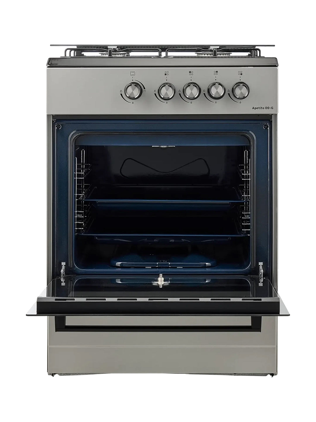 Artel Apetito 00-G V1 GKli kulrang gaz plitasi 4 ta mustaqil konforkali burilish pereklyuchatellariga ega bo‘lib, ular yordamida zarur isitish quvvatini tanlash amalga oshiriladi. Ishlab chiqaruvchi ishchi panel qoplamasi sifatida emallangan po‘latni tanladi - bu material hatto eng ko‘p o‘rnashib qolgan iflosliklardan ham ortiqcha kuch sarflamasdan tozalanadi.