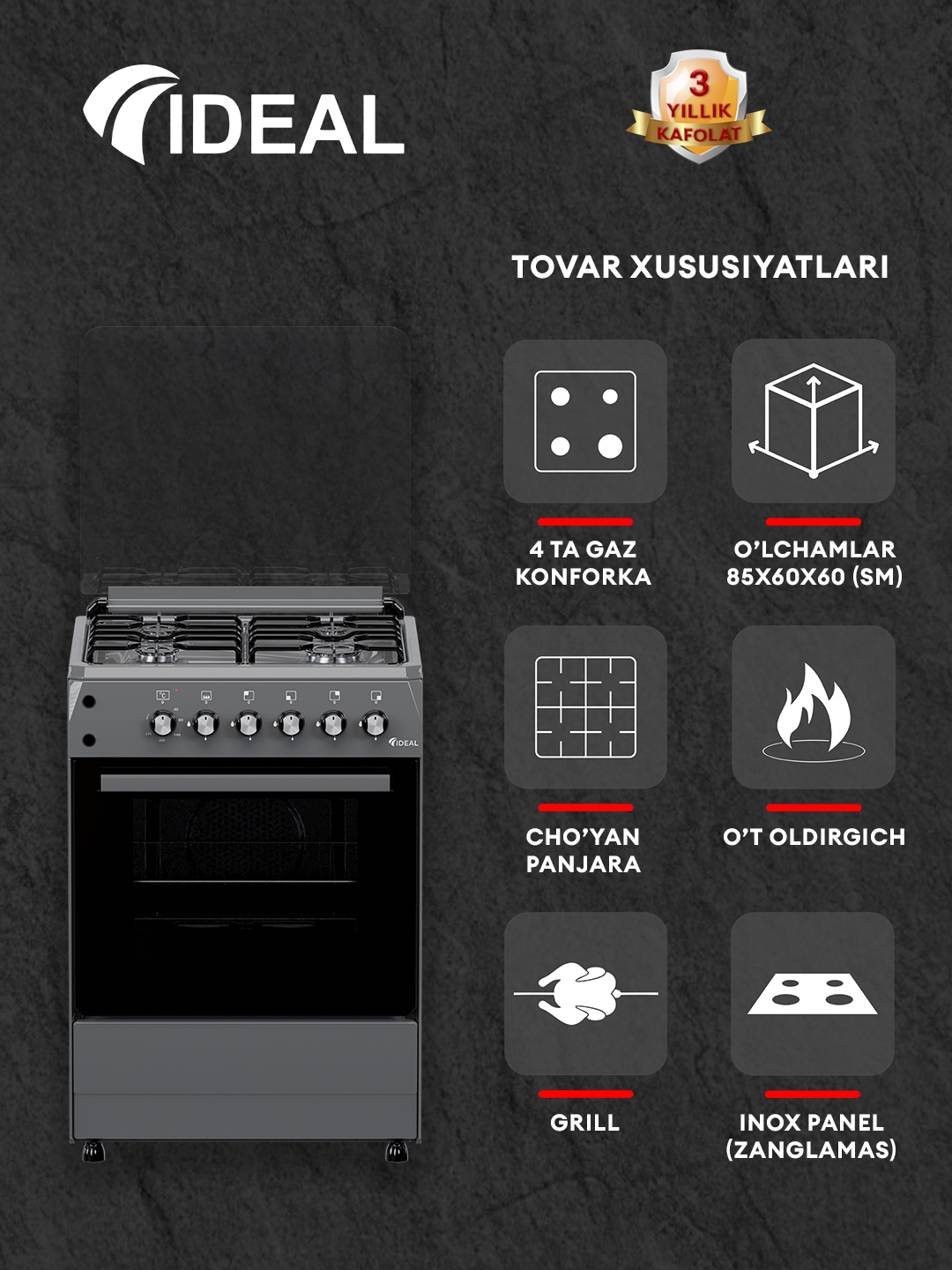 - Turkiya texnologiyasi asosida O'zbekistonda ishlab chiqarilgan. Kafolat: 3 yil