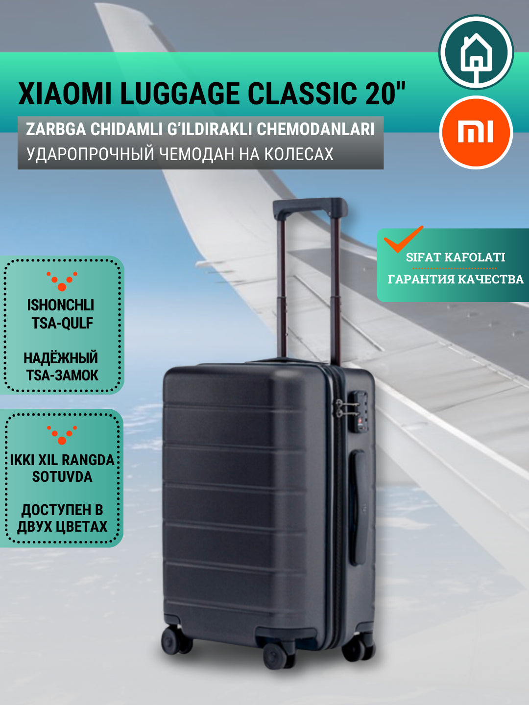 - O‘zingiz uchun Xiaomi Luggage Classic 20" chamadoni bilan betakror sifat va stilni oching. Ushbu chamadon o‘zida sayohatlarda ajoyib qulaylikni ta’minlab, muqarrar mustahkamlik va yengillikni uyg‘unlashtiradi.