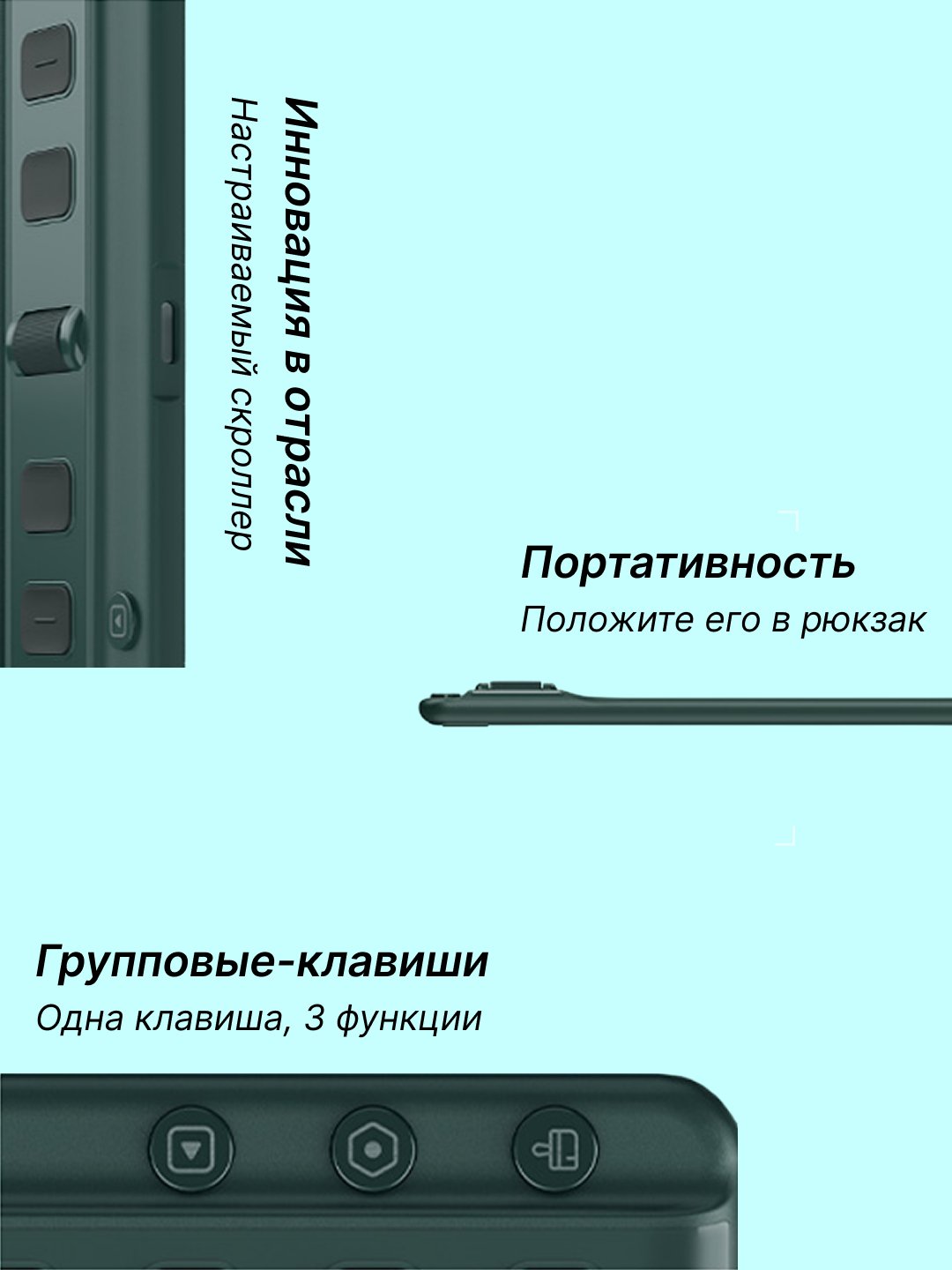 Klavishlar planshet sirtidan rangi bilan biroz farq qiladi va undan 2 mm chiqib turadi, ularga tushirilgan maxsus bo‘rtiqlar planshetga qaramasdan ham tezda mo‘ljal olish imkonini beradi. Bundan tashqari, Inspiroy 2 da sichqoncha g‘ildiragi kabi drayverlar menyusida sozlash mumkin bo‘lgan qulay skroller mavjud.