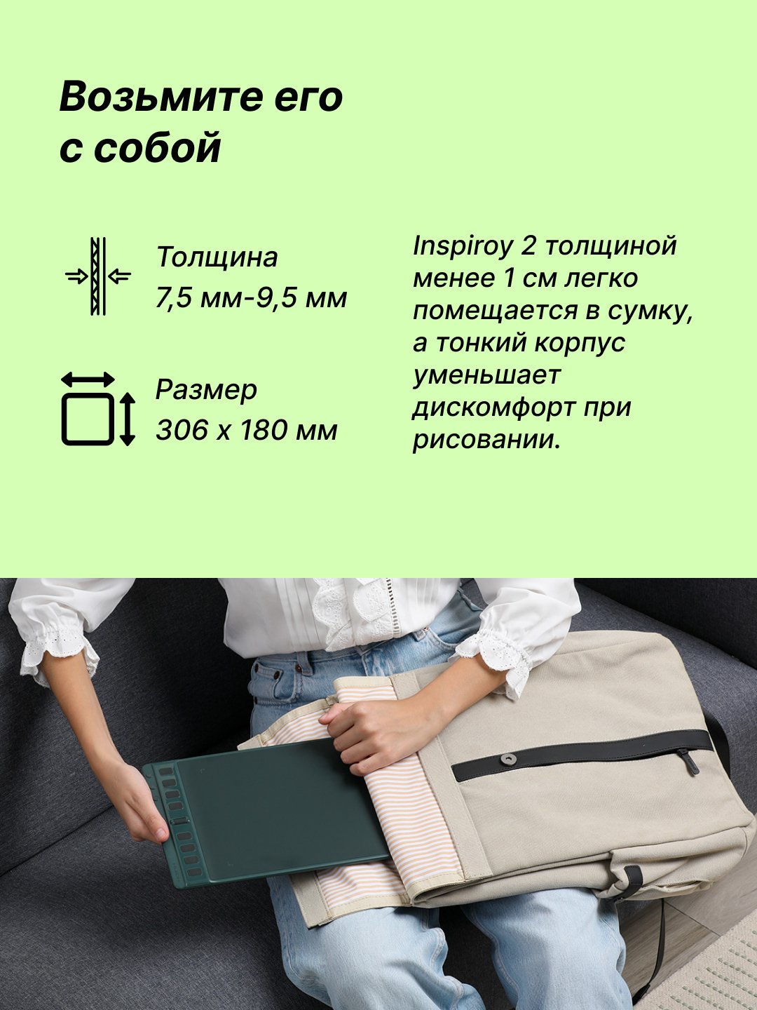 Inspiroy 2 Android va HarmonyOS asosidagi shaxsiy kompyuterlar, smartfonlar va planshetlar bilan mos keladi, bu esa imkoniyatlarni sezilarli darajada kengaytiradi va istalgan joyda va vaqtda ishlash imkonini beradi.