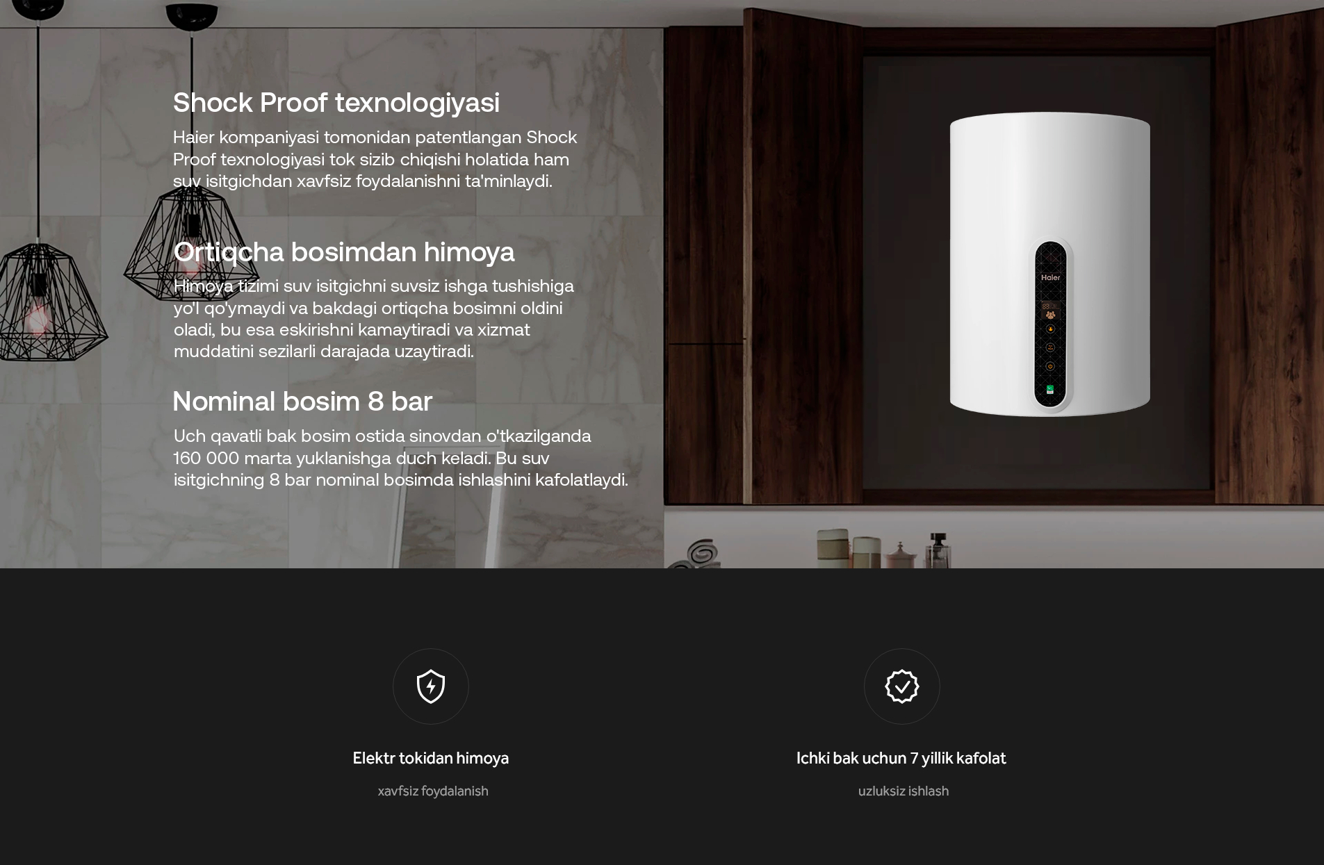 Haier ES50V-V1(R) suv isitgichi, 50 litr, 7 yillik ichki bak kafolati
