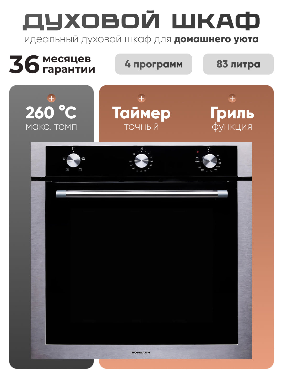 Hofmann OBS643SG pechkasi.3 / HF, 83l, 4 dastur, 260 C