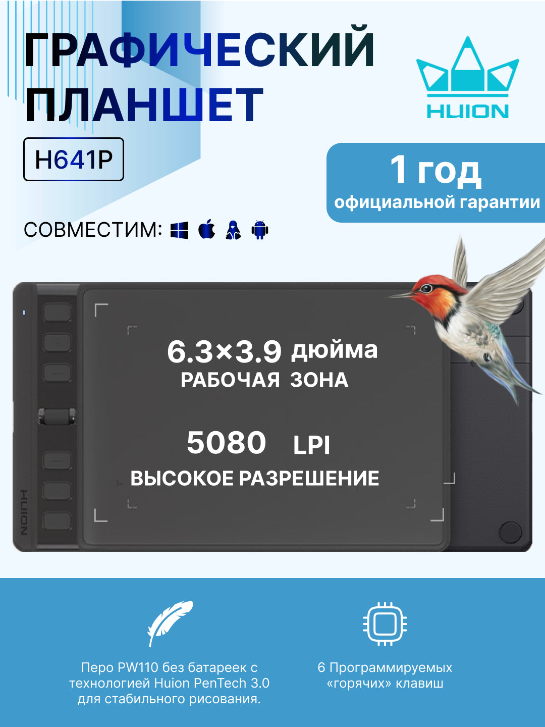 Huion H641P 6.3"x3.9" USB-C grafik plansheti