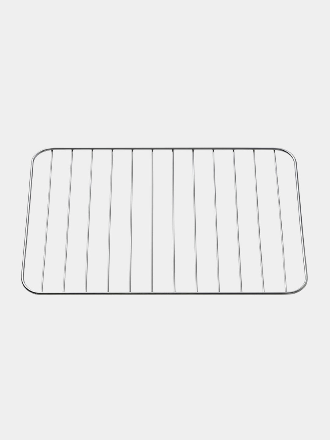 O'z ichiga oladi: pishirish varag'i / panjara uchun ushlagich, maydalanganlarni yig'ish uchun patnis, pishirish varag'i, simli panjara