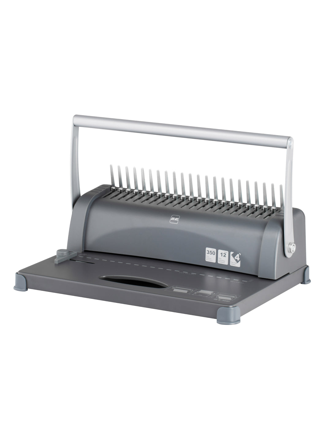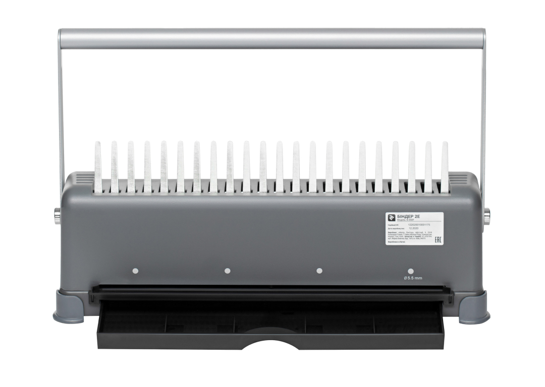 - Qurilma bir vaqtning o‘zida standart o‘lchamdagi 12 ta varaqni teshib o‘tadi. Binderning mahsuldorligi yuqori - bir martada u diametri 6-51 mm bo‘lgan prujinaga 350 tagacha varaq bloklarni mahkamlashi mumkin.