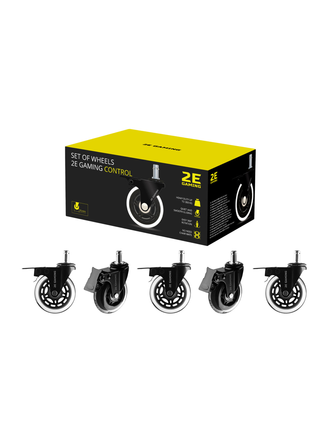 Ofis va o'yin kreslo uchun shovqinsiz g'ildiraklar to'plami 2E GAMING, 5 dona