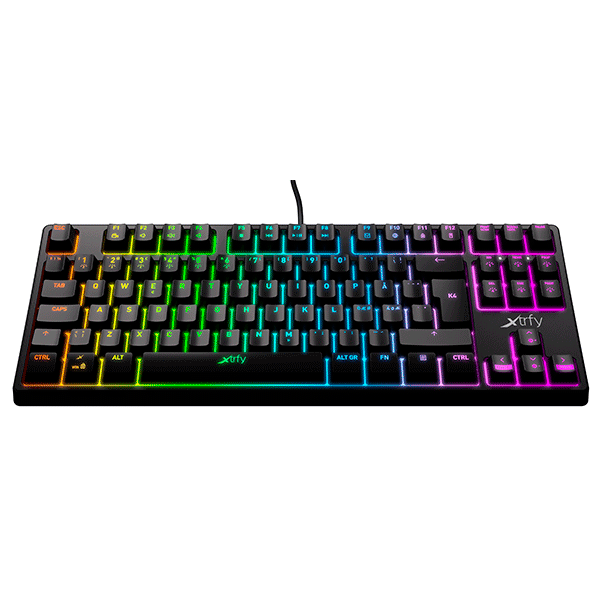 Elita geymerlari tomonidan tasdiqlangan Xtrfy professional klaviaturalarida qizil mexanik kalit kalitlari mavjud. Yengilroq teginish, tezroq javob berish va 70 million marta bosish muddati.