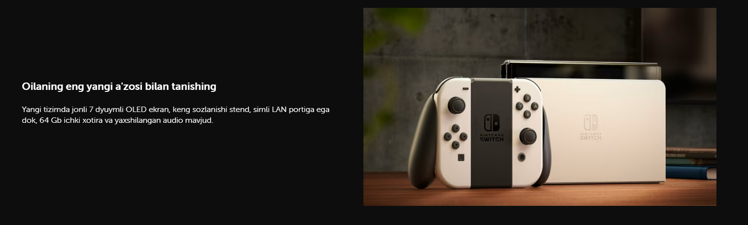 Nintendo Switch konsolida istalgan joyda va istalgan vaqtda sevimli o'yinlaringizdan zavqlaning — Oled modeli!