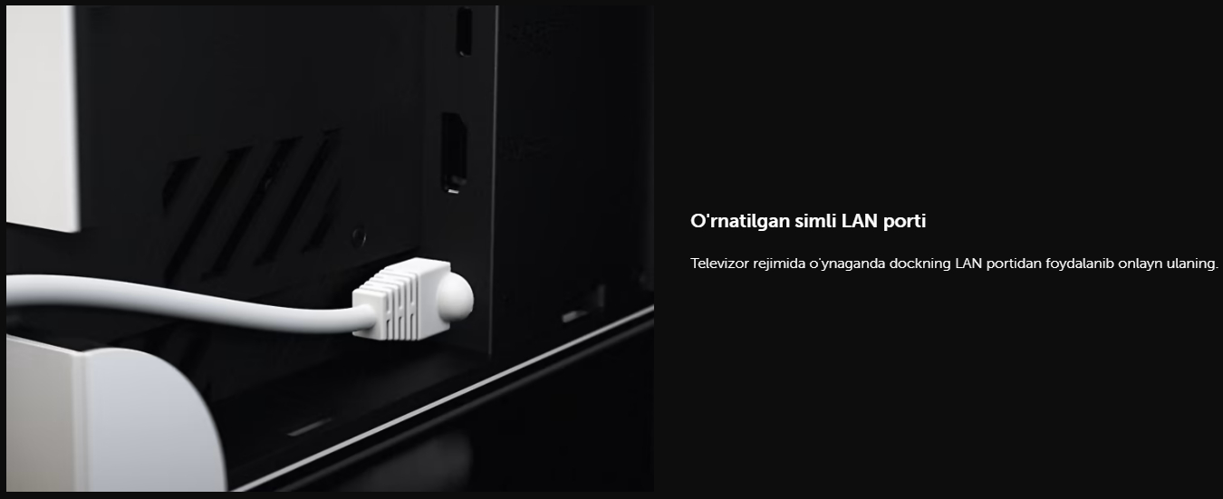 - Televizorda barqaror onlayn o'yin uchun Lan portiga ega yangi dok