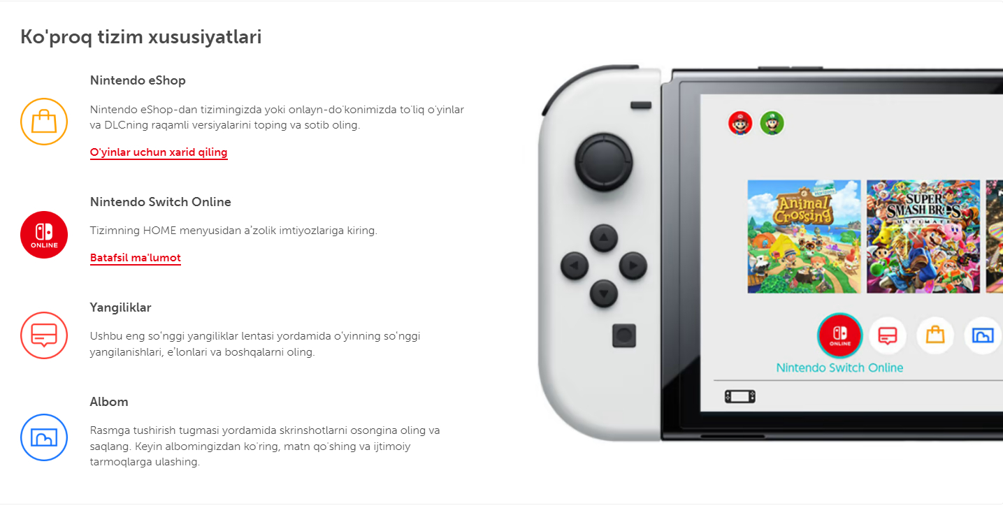 Nintendo Switch-Oled modeli ham o'z ichiga oladi: