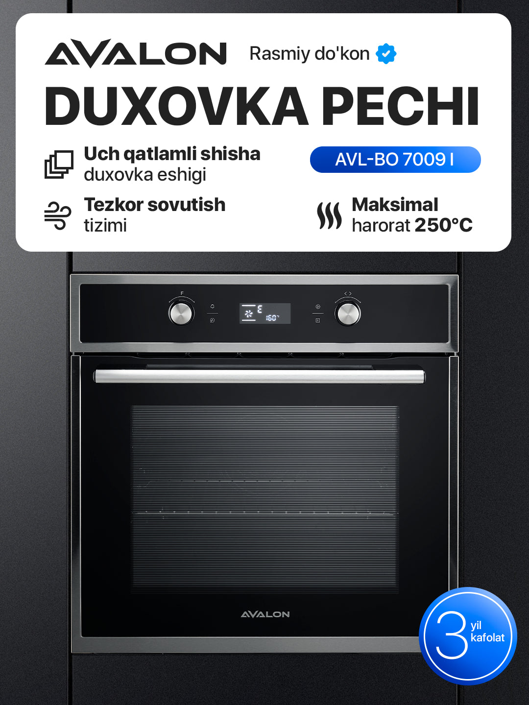 AVL-BO7009I duxovkasi — bu sifat, qulaylik va ishonchlilikni qadrlovchilar uchun ajoyib tanlov!