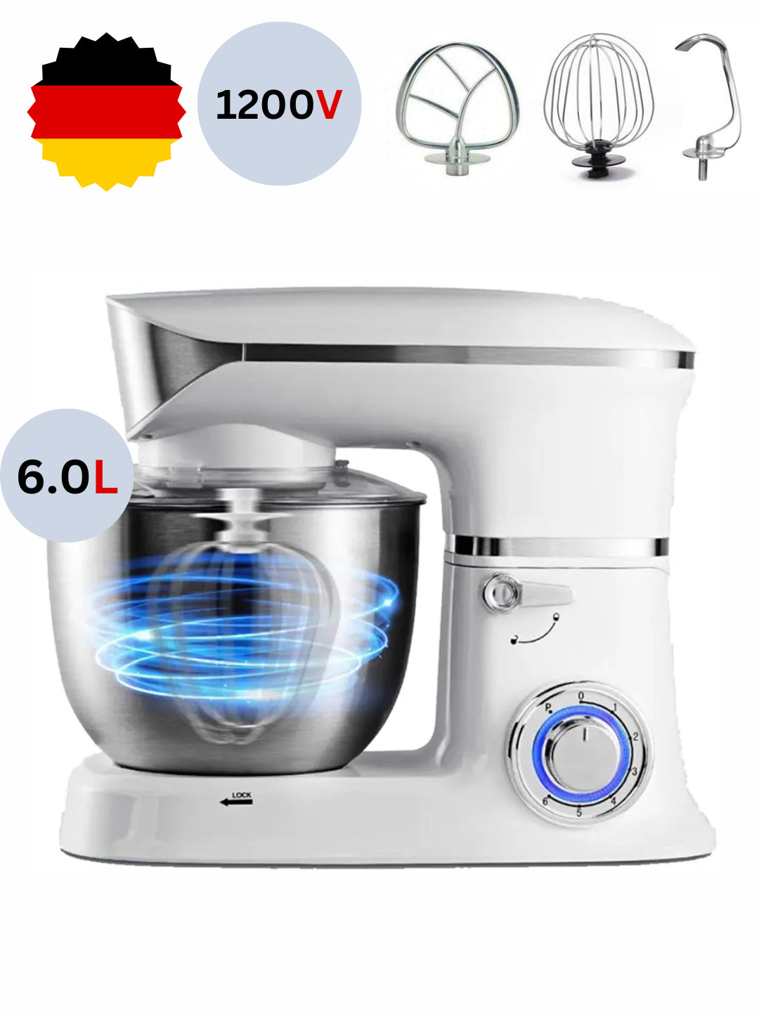 Planetar mikser, statsionar, ko'p funktsiyali, chashka 6 litr, 1200 Vt