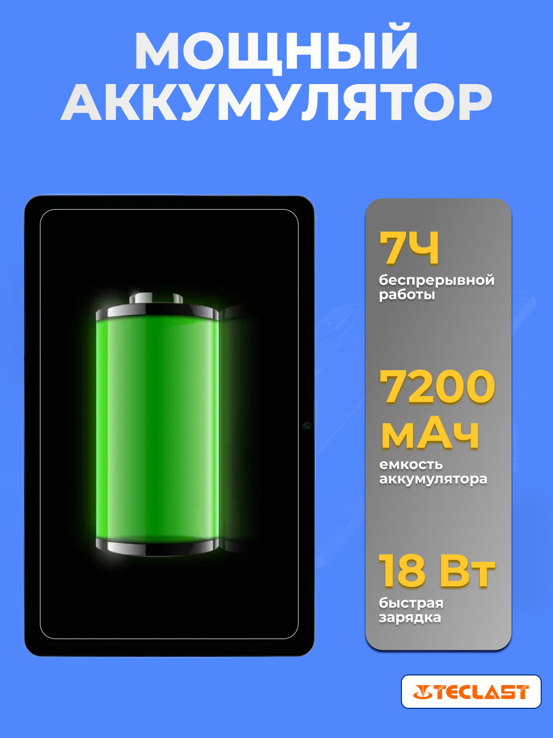 • Batareya quvvati: 7200 mA/soat
