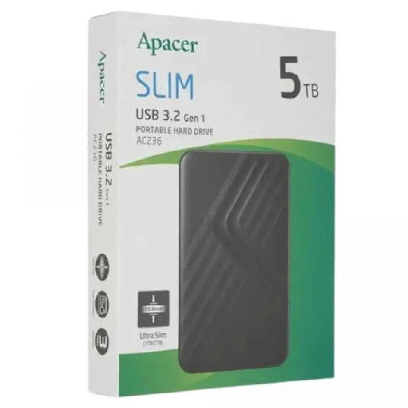 Apacer AC236 tashqi qattiq diski ixcham qora 2,5 dyuymli korpusda joylashgan bo‘lib, har qanday sharoitda olib yurish va foydalanishni osonlashtiradi. 5 TB xotira sig‘imi HD sifatidagi katta hajmdagi fotosuratlar, videolar, teleseriallar va filmlar to‘plamini yaratish, shuningdek ishonchli zaxiralash tufayli fayllarni xavfsiz saqlash va ko‘chirish imkonini beradi, bu esa ma’lumotlarni yo‘qotish xavfini yo‘q qiladi.