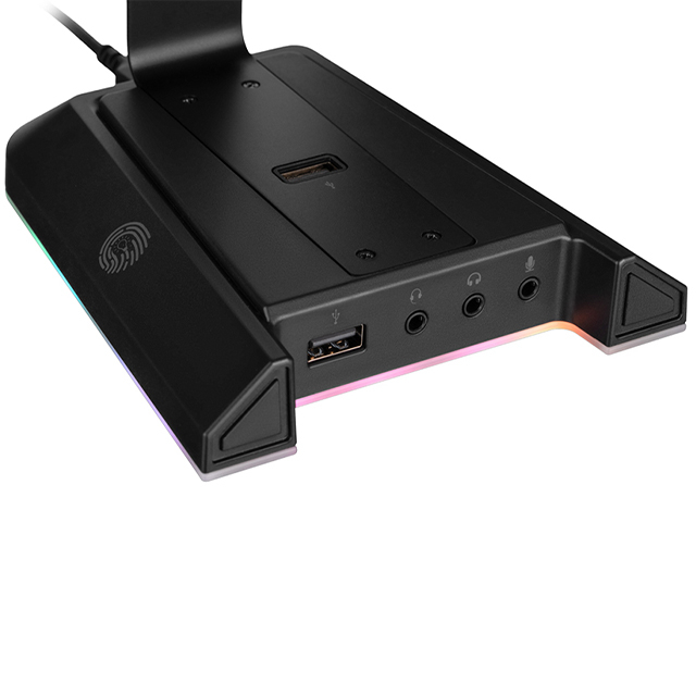 Universal va ko'p funktsiyali 2e Gaming Headset stand RGB stendi nafaqat eshitish vositasi stendi, balki ko'proq tashqi qurilmalarni ulash uchun qo'shimcha 2 ta USB portdir. Soxta harakatlarning oldini oladigan silikon sichqoncha sim ushlagichi. 7 rejim va o'chirish qobiliyatiga ega RGB sensorli boshqaruv. O'yin stolida bo'sh joyni tashkil qilish uchun ideal echim.