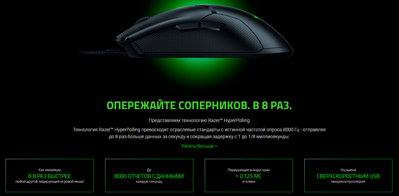 - Xususiyatlari: Maksimal sezgirlik uchun Razer™ HyperPolling texnologiyasi