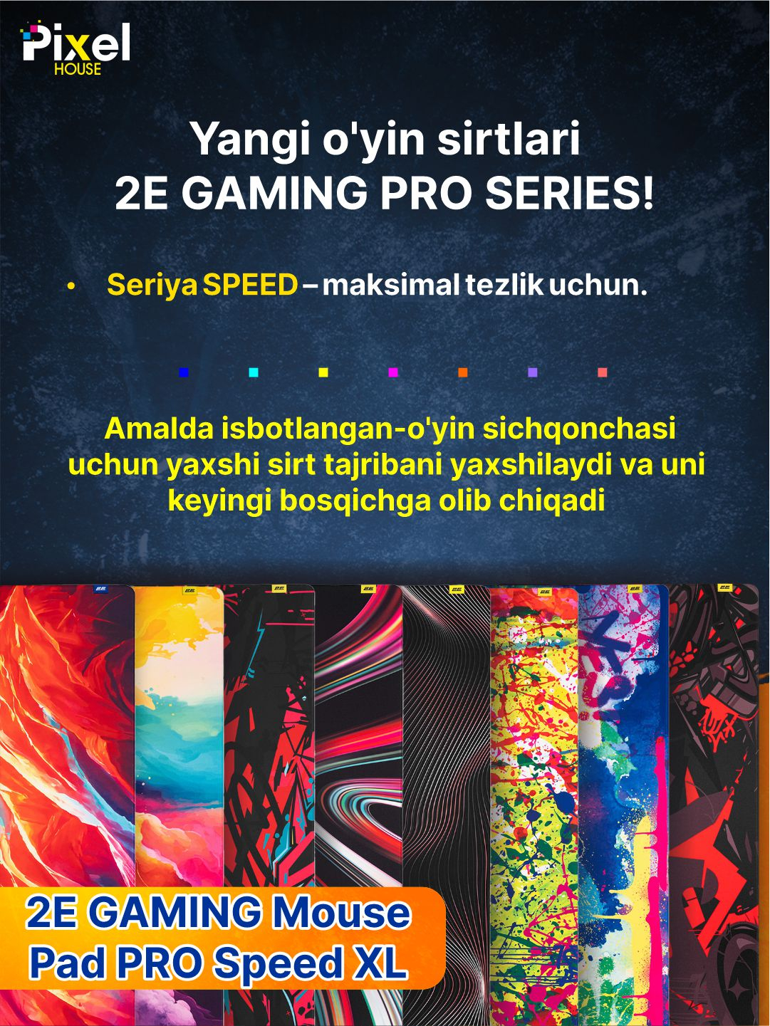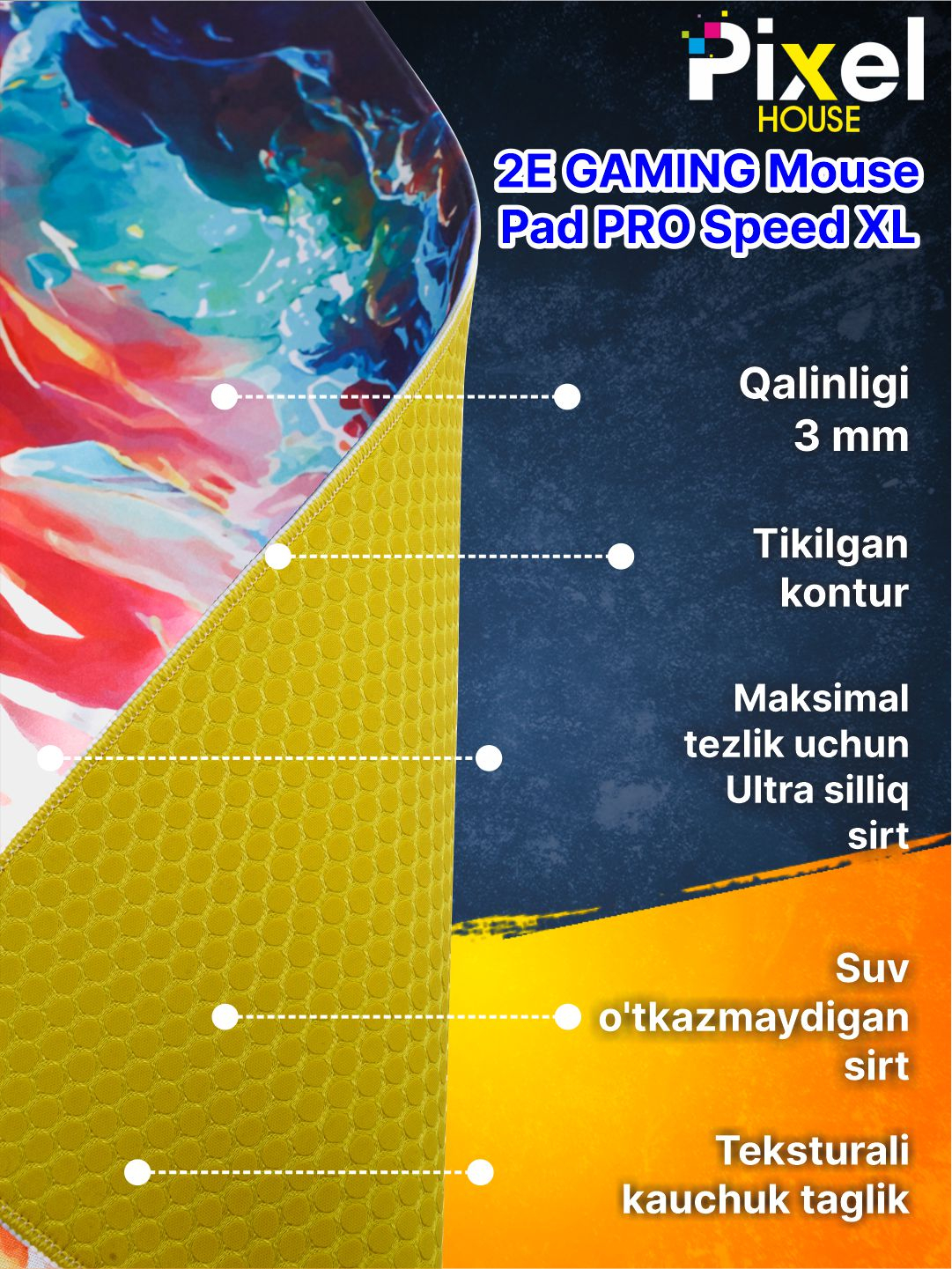 - Agar siz o'yinda qulaylik va aniqlikni ta'minlaydigan ishonchli va sifatli o'yin yuzasini qidirsangiz, unda 2Е Gaming Mouse Pad PRO Speed XL Multicolor siz uchun ajoyib tanlovdir