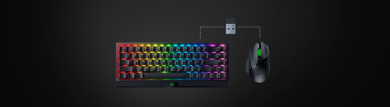 Simsiz sichqoncha va klaviaturani bir xil transmitterga ulab, sozlashni engillashtiring va USB portini bo'shating, bu xususiyat bizning so'nggi Razer HyperSpeed tashqi qurilmalarimizda yoqilishi mumkin.
