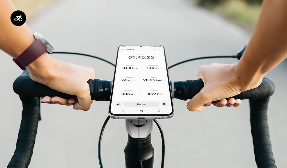 Velosiped haydash uchun Watch-Mobile Interworking Galaxy Watch4 Classic sizning yurak urish tezligi va kaloriyalaringizni o'lchaydi va ma'lumotlarni real vaqtda telefoningizning katta ekranida ko'rsatadi. Endi siz telefoningizni boshqaruv paneliga aylantirishingiz mumkin.