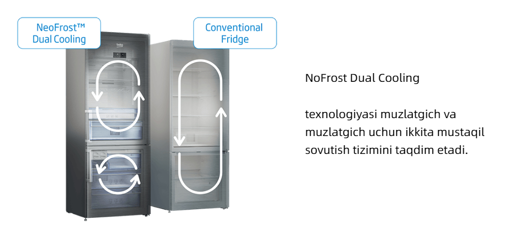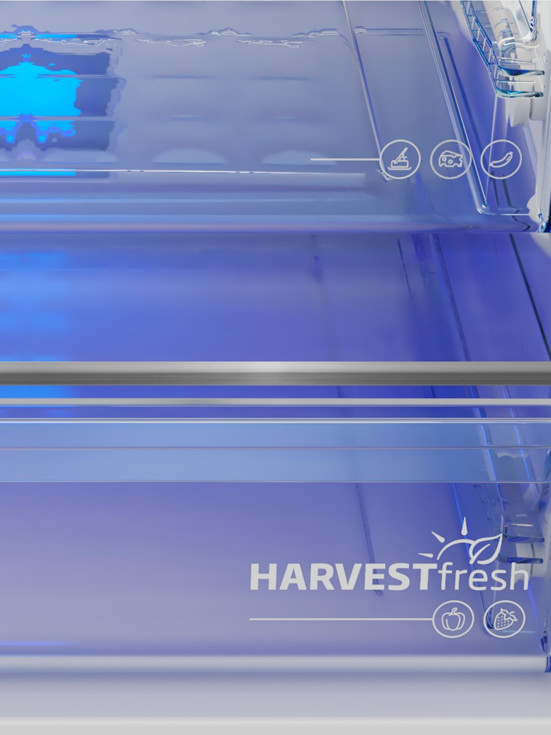 HARVESTFresh™ texnologiyasi 3 rangdagi yorug‘lik bilan muzlatgichingiz ichidagi 24 soatlik quyosh tsiklini taqlid qiladi. Shunday qilib, sabzavot va mevalardagi vitaminlar uzoqroq saqlanadi. Har bir bo'lim uchun ikkita alohida sovutish tizimiga ega NeoFrost™ texnologiyasi sovutgich va muzlatgichda mukammal havo aylanishini va optimal haroratni ta'minlaydi.