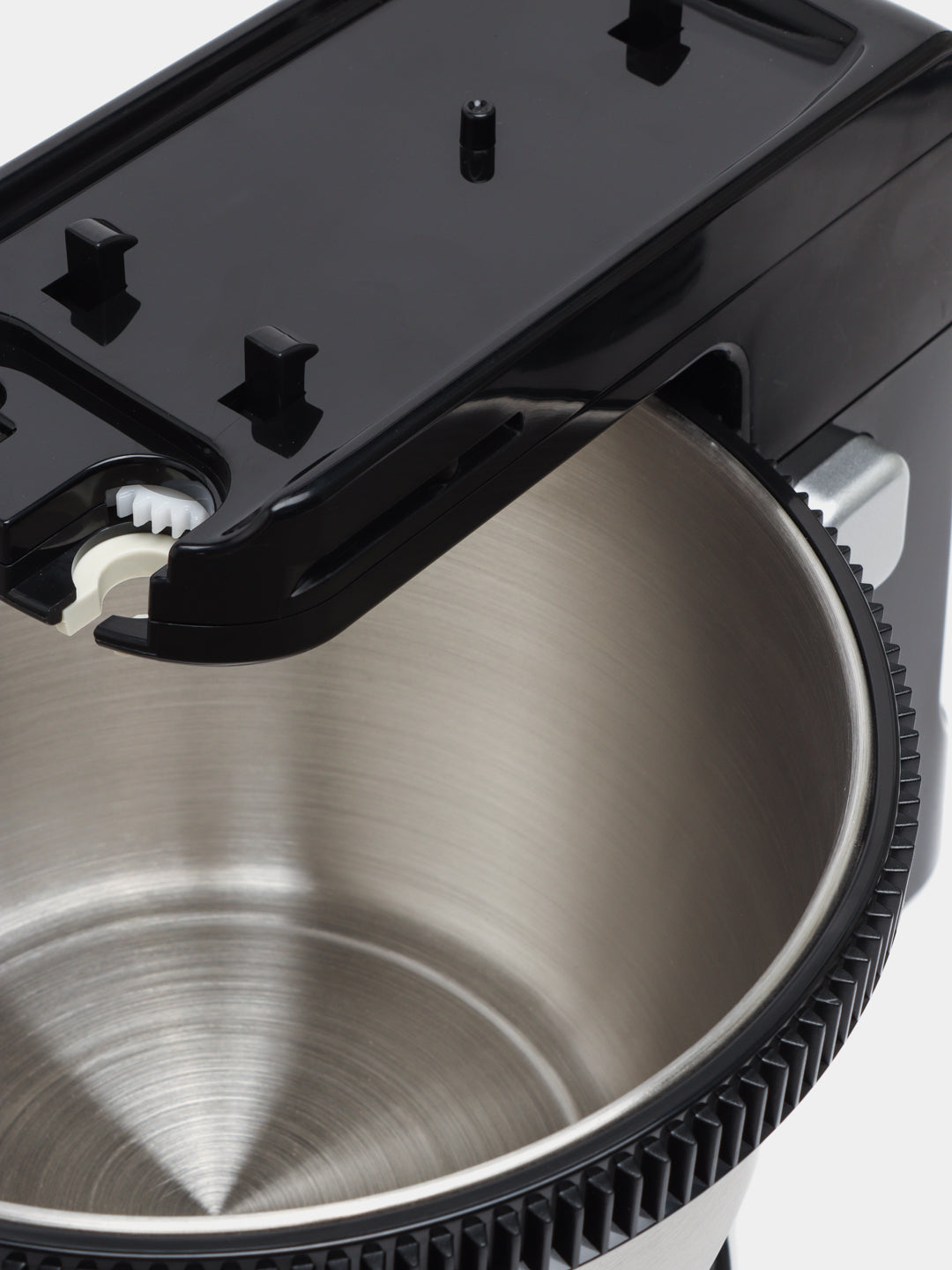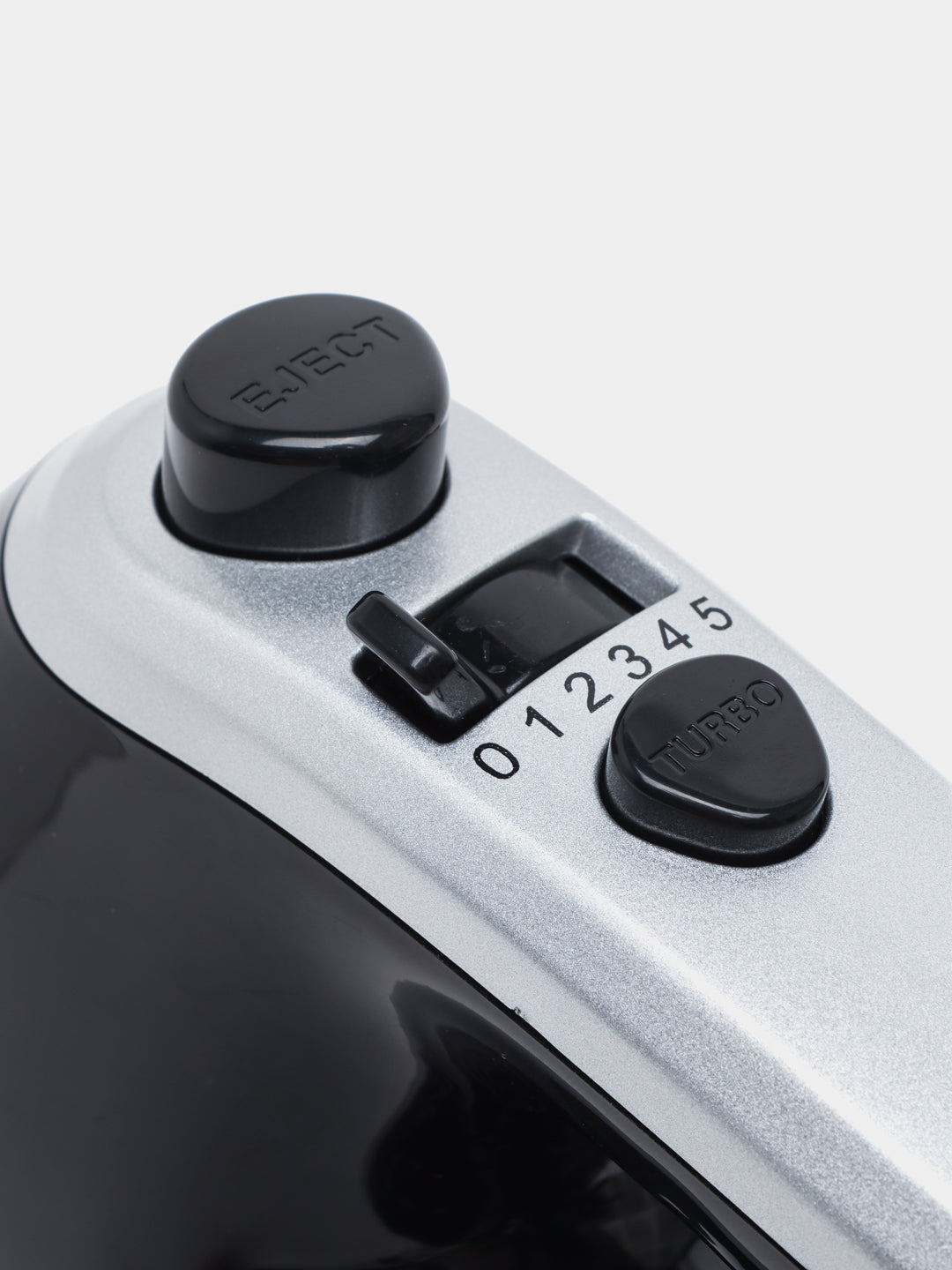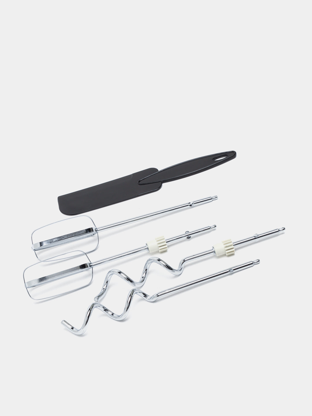 Ushbu mikser krep va pirog xamiri, omlet va turli xil kremlarni tayyorlash uchun juda mos keladi. Turbo rejimi kerak bo'lganda quvvatni yanada oshirish imkonini beradi. Bir marta bosish bilan siz ko'pirtirgichlarni yoki xamir ilgaklarini ajratib olishingiz mumkin. Ergonomik tutqich, engil vazn va yaxshi hisoblangan og'irlik markazi mikserdan hech qanday kuch sarflamasdan foydalanish imkonini beradi. U ikki turdagi nozullar bilan jihozlangan - butunlay metall, plastik ulanishlarsiz. Xamirlar, kremlar va hokazolarni tayyorlash uchun ko'pirtirgichlardan, non yoki noodlelarni yoğurmak uchun esa xamir ko'pirtirgichlardan foydalaning. Shnurni saqlash oshxonani tartibli saqlashni tashkil etishga yordam beradi.