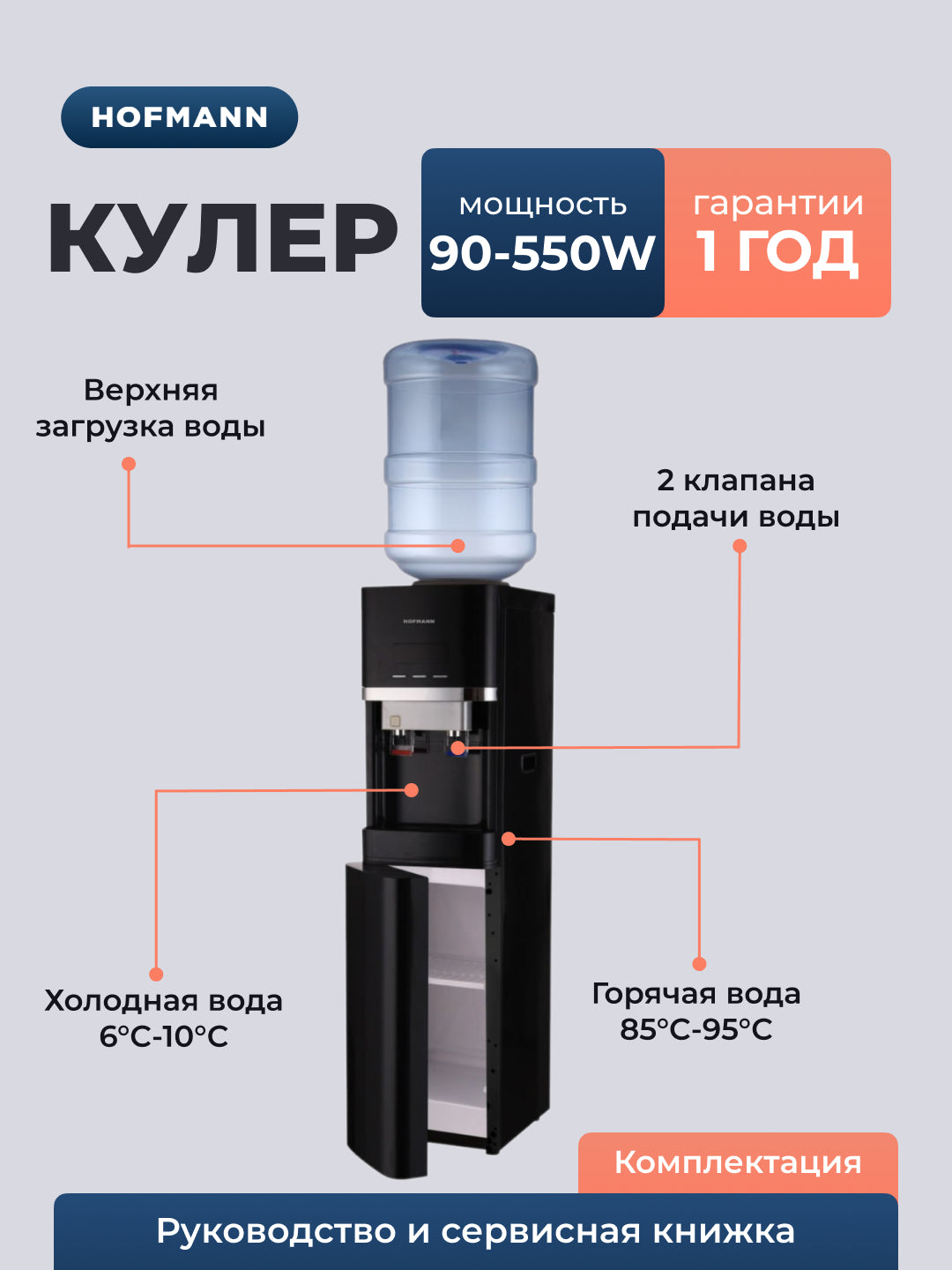 Hofmann WDBL01-CSMB/HF — bu uy yoki ofis uchun ideal bo‘lgan funksional suv sovutgichi.