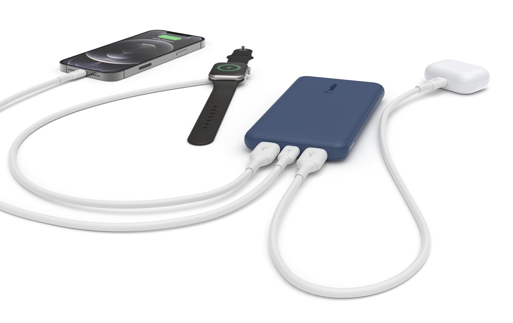 Ikkita USB-A porti va bitta USB-C porti barcha qurilmalaringizni zaryad qiladi, bu sizning smartfoningiz va boshqa ikkita aksessuaringiz uchun 15 vattgacha quvvat beradi. Barcha 3 portdan foydalanganda 15 vattgacha quvvat oling va smartfoningizga 40 soatgacha qo'shimcha batareya quvvatini qo'shing. Filmlarni tomosha qiling, video qo'ng'iroqlarni qabul qiling va navigatsiya dasturlarini manzilingizgacha saqlang. LED indikatori quvvat manbai qachon qayta zaryadlanishi kerakligini ko'rsatadi va kiritilgan USB-A – USB-C kabeli sizga qutidan tashqarida zaryadlashni boshlash imkonini beradi.