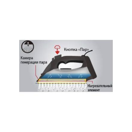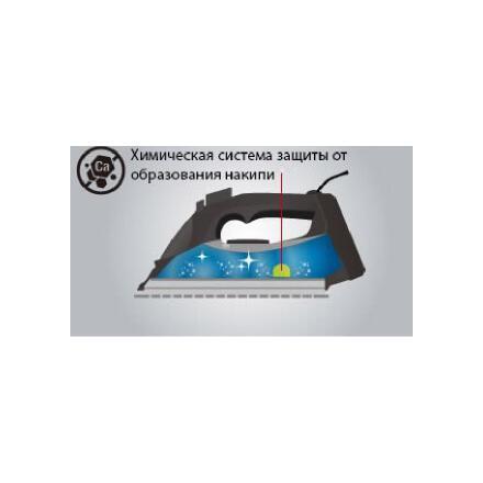 Dazmollash paytida: taglikning harorati bug' hosil bo'lish haroratidan pastga tushganda, bug'ga qarshi tizim ishga tushadi, bu esa bug' teshiklarining oqishini oldini oladi. Dazmollashdan keyin: tankda bir oz suv qolgan bo'lsa ham, yomg'irga qarshi tizim kiyimingizni dog'lardan ishonchli himoya qiladi.