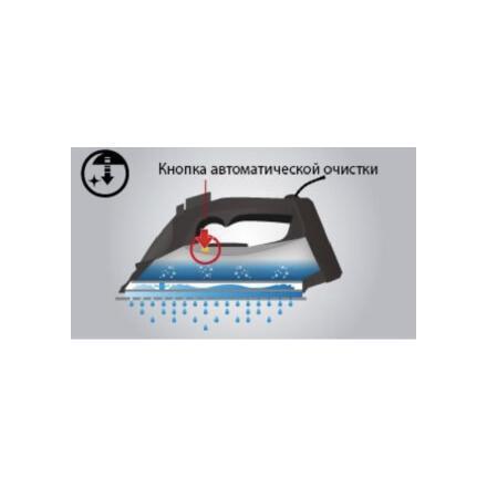 O'z-o'zini tozalash tugmachasini bosish bir vaqtning o'zida suv idishining teshiklarini yuvish va bug' chiqishi uchun dazmolni bir zumda tozalash imkonini beradi.