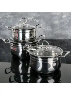 Idishlar to'plami 3 dona: 18/20/22 sm kostryulkalar, shisha qopqoqlar, kapsulaning pastki qismi