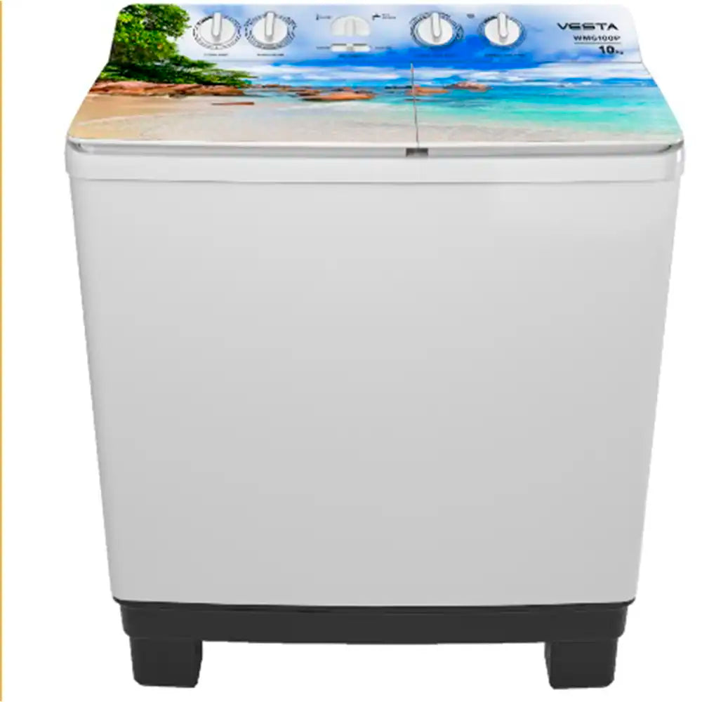 Vesta WMG 10P Water 01 — 10 kg yuklama bilan ishlovchi kuchli yarim avtomatik kir yuvish mashinasi. Katta oilalar uchun juda mos. Ishonchli va samarali, suv mavzusidagi dizayni bilan zamonaviy ko‘rinadi.