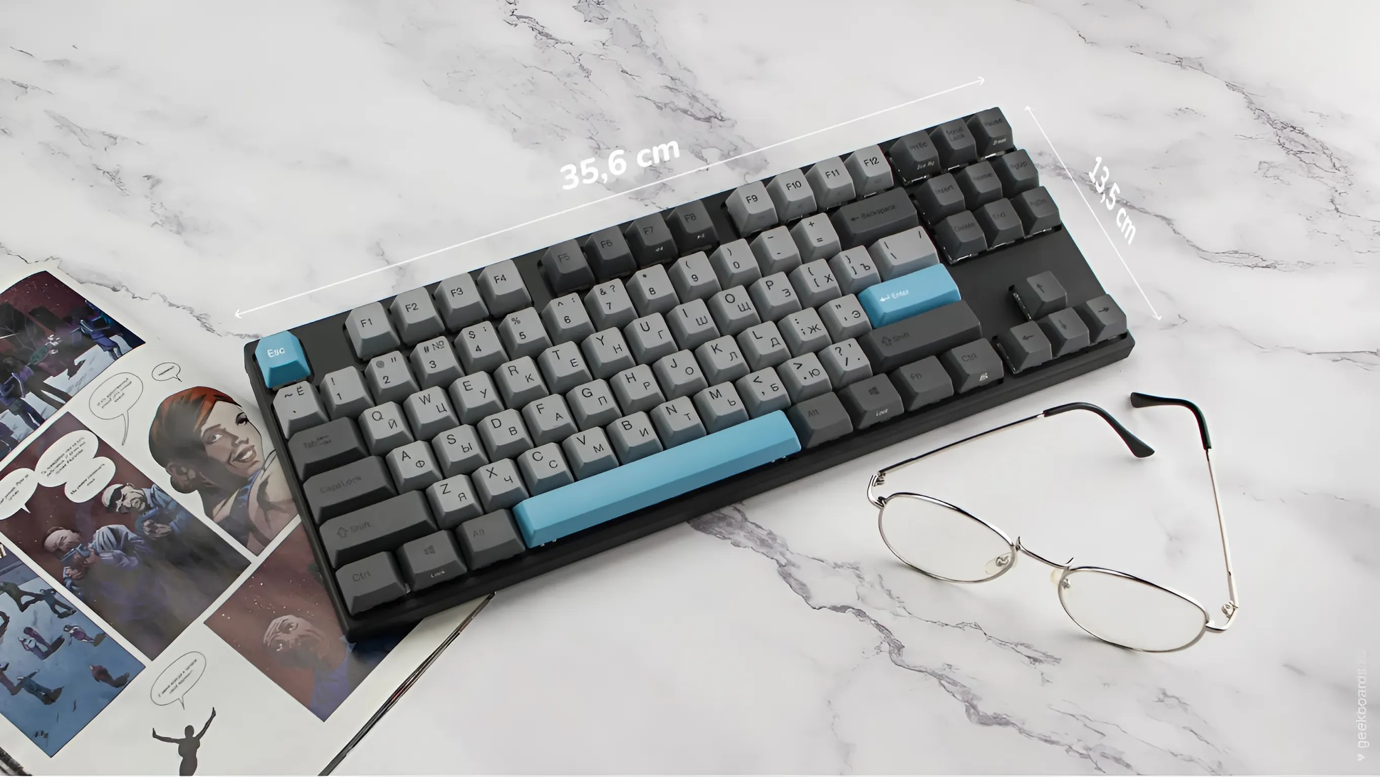 Ular bo‘yash-sublimatsiya texnologiyasidan foydalangan holda mustahkam PBT plastmassadan tayyorlangan bo‘lib, yon tomonlarida ramzlar o‘yilgan. Klavishlar silliq va ushlab ko‘rganda yoqimli, kam ifloslanadi, belgilar esa o‘chmaydi va bosilganda sezilmaydi.