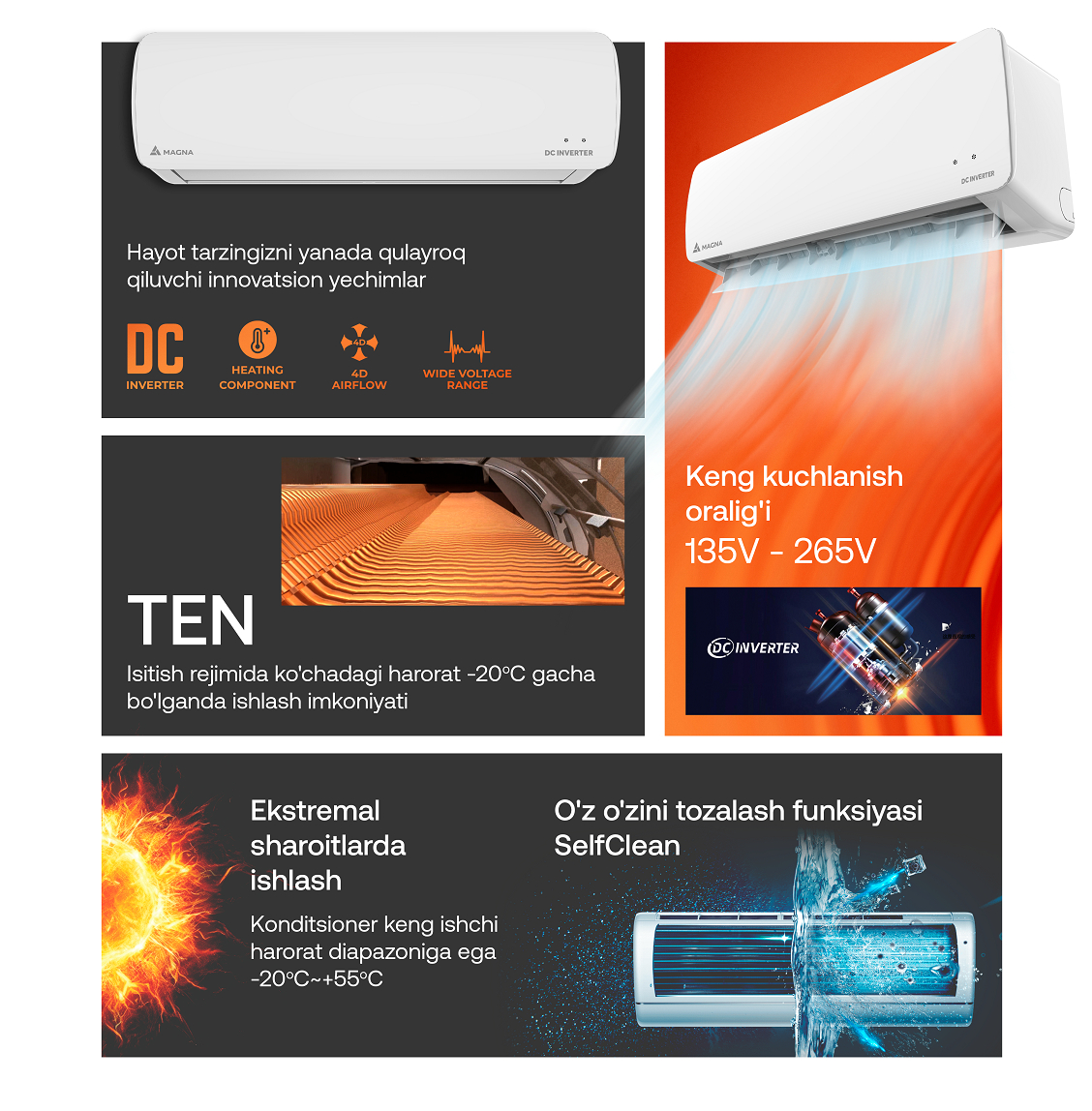 Konditsioner MAGNA CHSI-12H, DC Invertor, isitish TEN mavjud, 4D havo oqimi