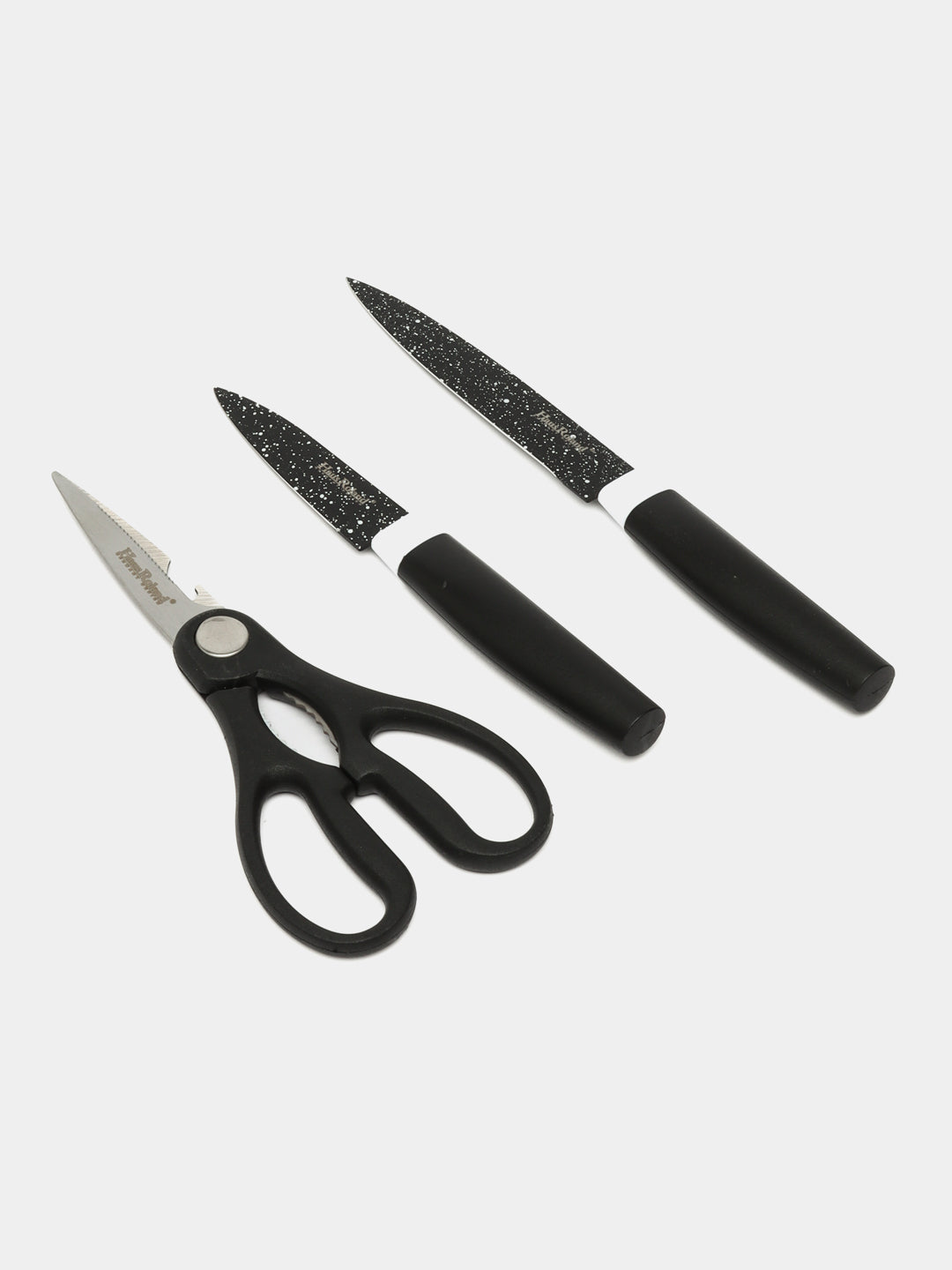 Oshxona pichoqlari to'plami sizning oshpazlik yordamchingizga aylanadi. Va uning dizayni tufayli oshxona yangi tarzda porlaydi. Har bir pichoq o'tkir va uzoq vaqt davomida o'tkirlashadi. Agar kerak bo'lsa, musat yordamida uni yanada keskinlashtirishingiz mumkin. Pichoqlar to'plami zanglamaydigan po'latdan yasalgan. Mahsulotimizning dastasi sirpanishga qarshi qoplama tufayli xavfsizdir.