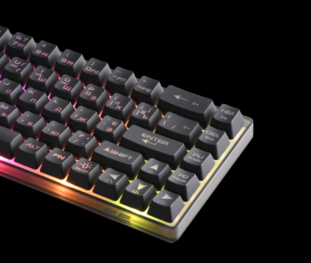 Membrana klaviaturasi 65% ommabop formatda ishlab chiqilgan bo‘lib, 10 million bosish resursiga ega 68 ta klaviaturaga ega bo‘lib, ular foydalanuvchi harakatlariga darhol javob beradi va qulay o‘yin yoki matn to‘plamini ta’minlaydi. Model yumshoq tayping bilan ajralib turadi, Ukraina dizayni mavjud. Bundan tashqari, namlikdan himoya qilish ham ko‘zda tutilgan. Klaviatura Windows 11 (va undan yuqori versiyalar), Linux, macOS asosida ishlaydigan qurilmalar bilan mos keladi.