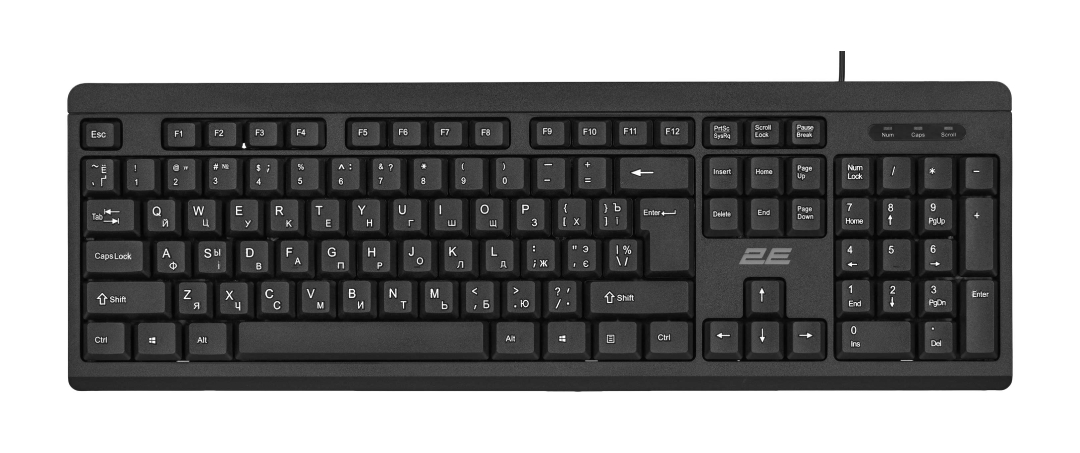 2E KS108UB BLACK klaviaturasini taqdim eting - ish stolingiz uchun funksionallik va ishonchlilikning mukammal kombinatsiyasi! Nafis qora qoplamaga ega ushbu simli klaviatura ish va o‘yin uchun hamrohingizdir.