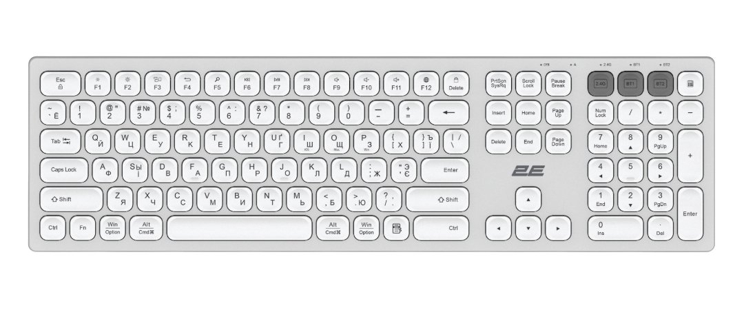 Simsiz qaychi klaviatura 2E KS270 105 kalit, WL/BT, 2E-KS270WBGR