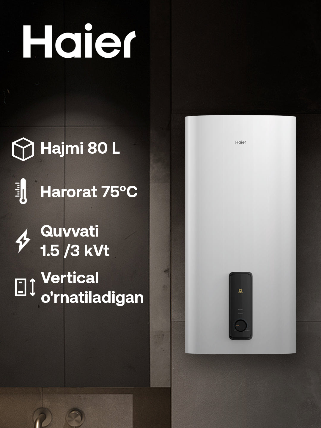 Suv isitgichi Haier ES80V-F3, 80 litr, ichki idishga 7 yil kafolat
